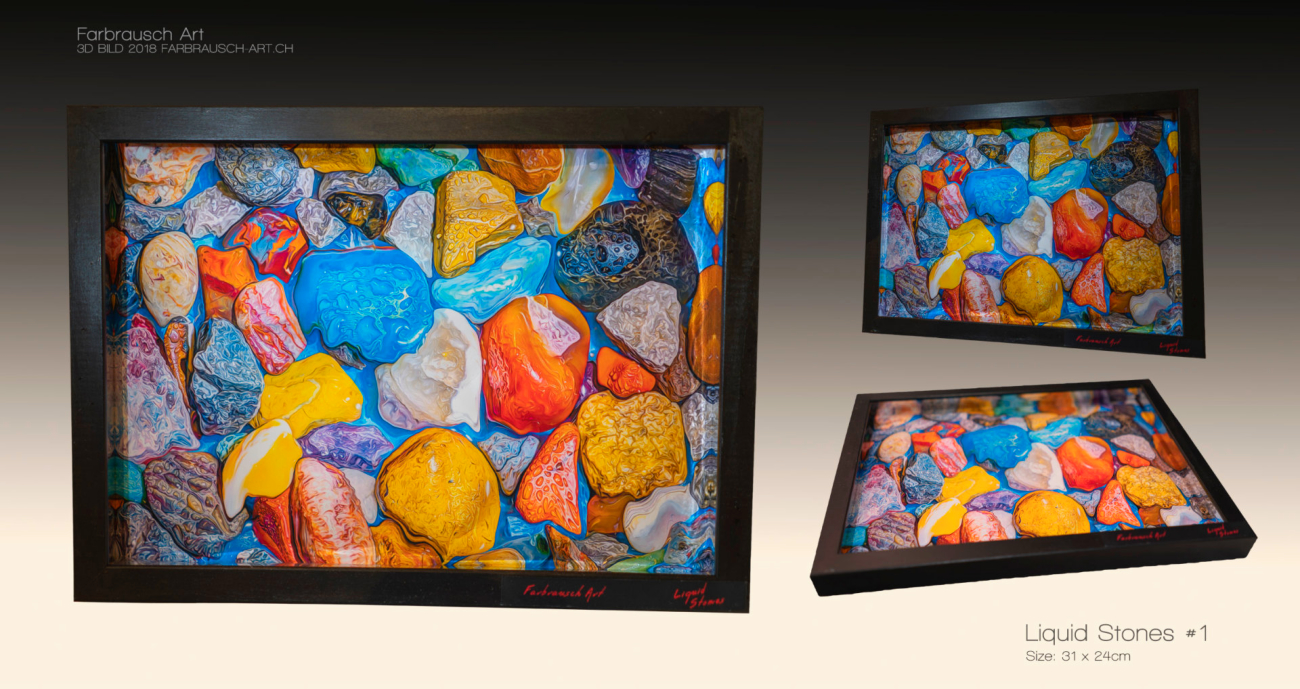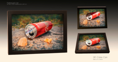 hier findest du eine kleine auswahl an leinwandbildern im farbenfrohen designe. die 3d bilder habe teilweise unterschiedliche effekte, wie mehrere bildschichten bei dem stein am  wasser bild oder ein metalldruck auf dem cola-dosen bild.